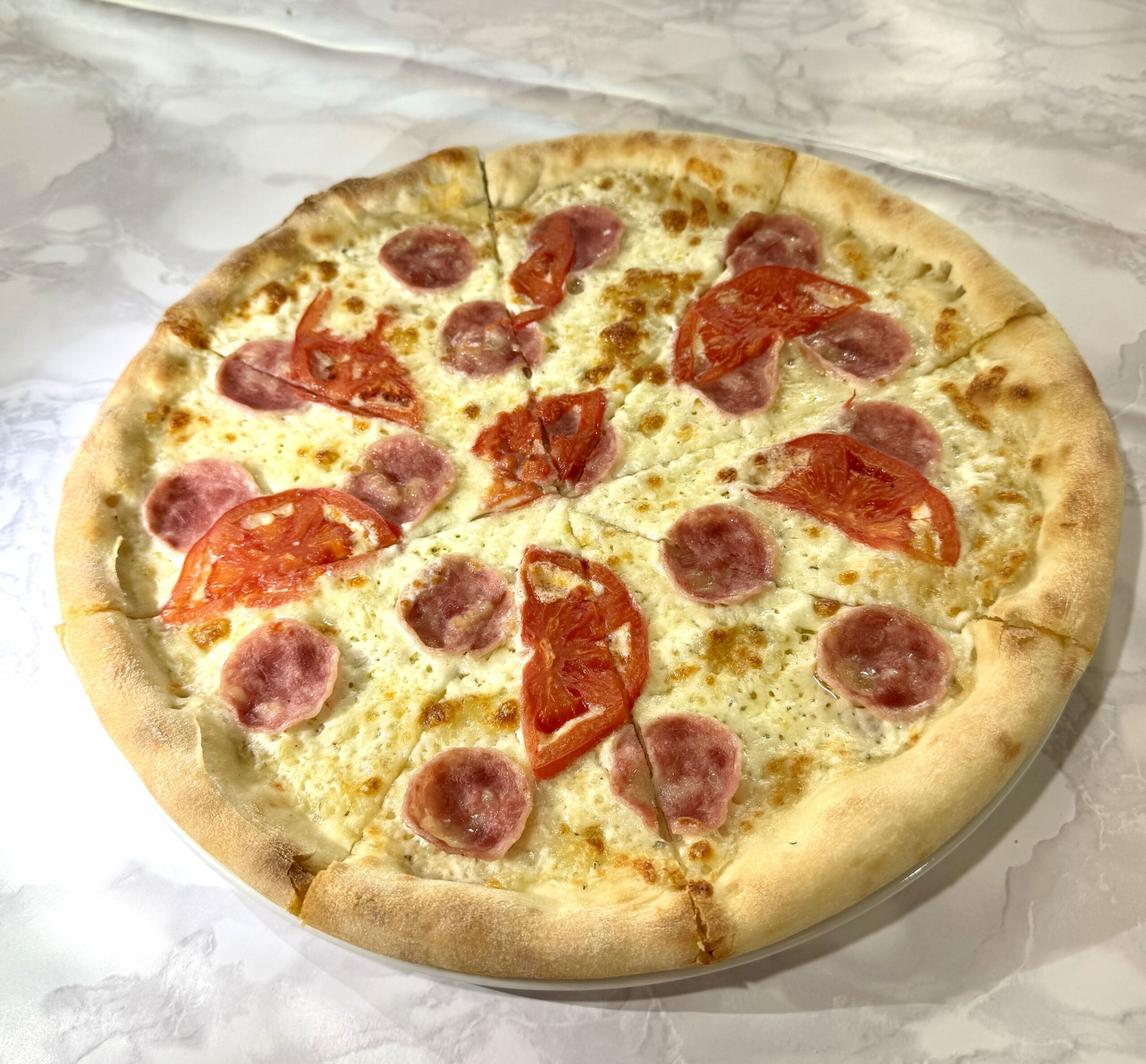 Ветчина, сыр «Моцарелла», помидор, соус сливочный