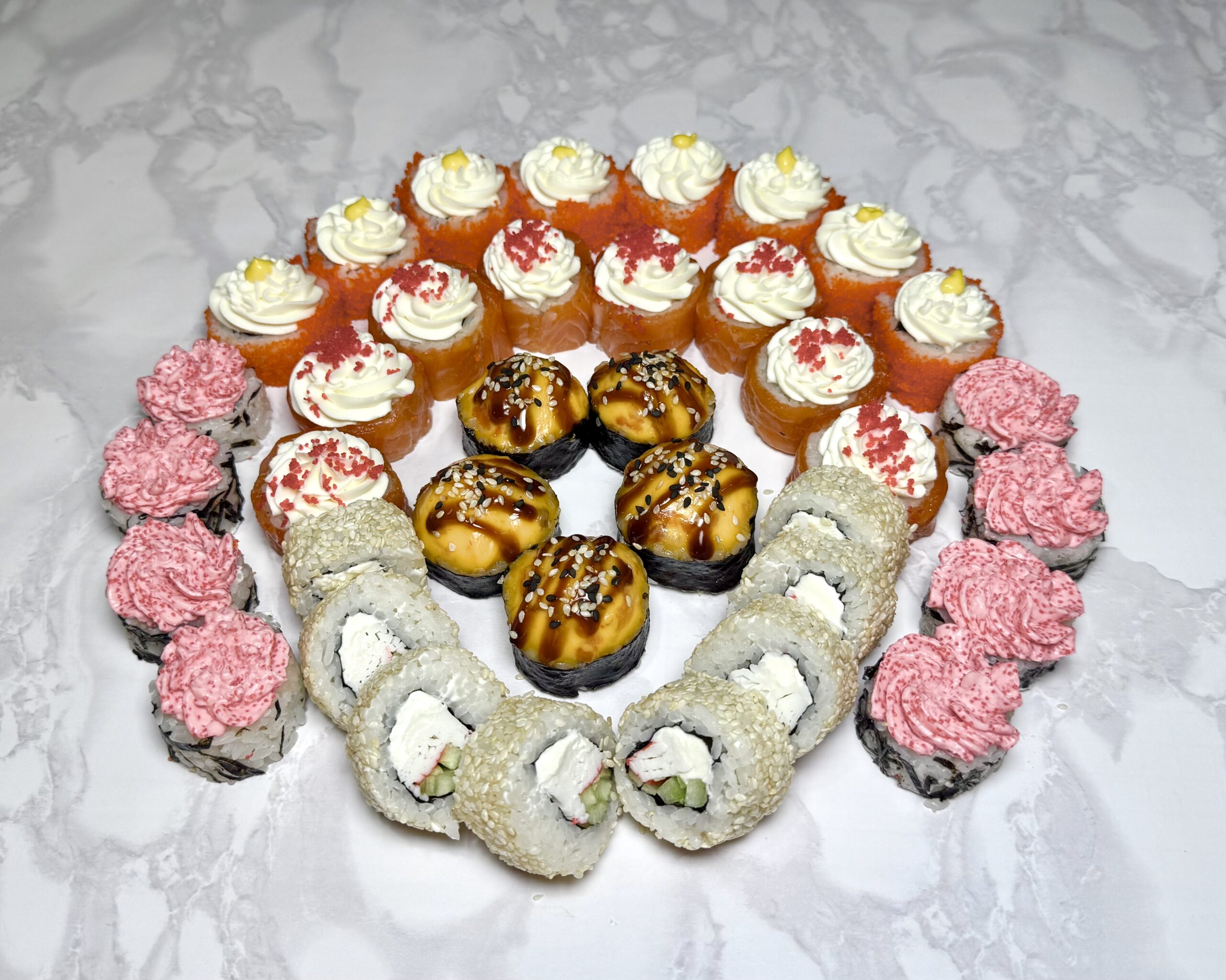 Ролл Филадельфия де люкс, Ролл Эби чиз, Ролл Атлантида, Ролл Запеченный с угрем и перцем, Ролл Калифорния в кунжуте