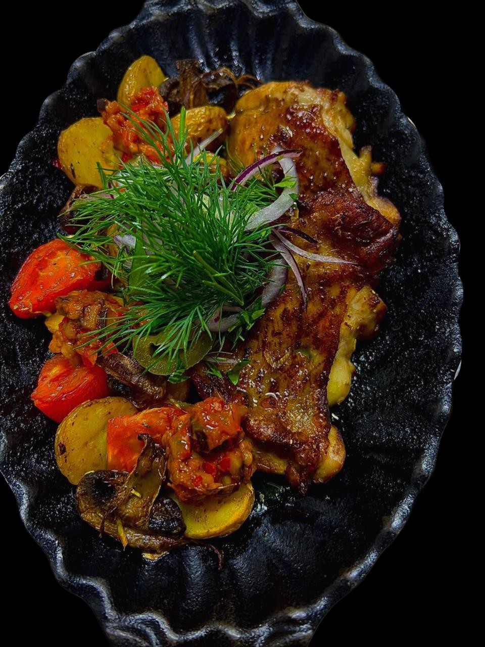Курица, Картофель, Помидоры, Шампиньоны, Лук репчатый